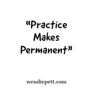 But when my adorable son looked me square in the eye and said, “No Mommy, practice makes permanent,” I’m pretty sure my jaw dropped. Profound for a young boy and he was correct. His teacher had said that to the class and it stuck with him long enough to make an impact on me as well.
